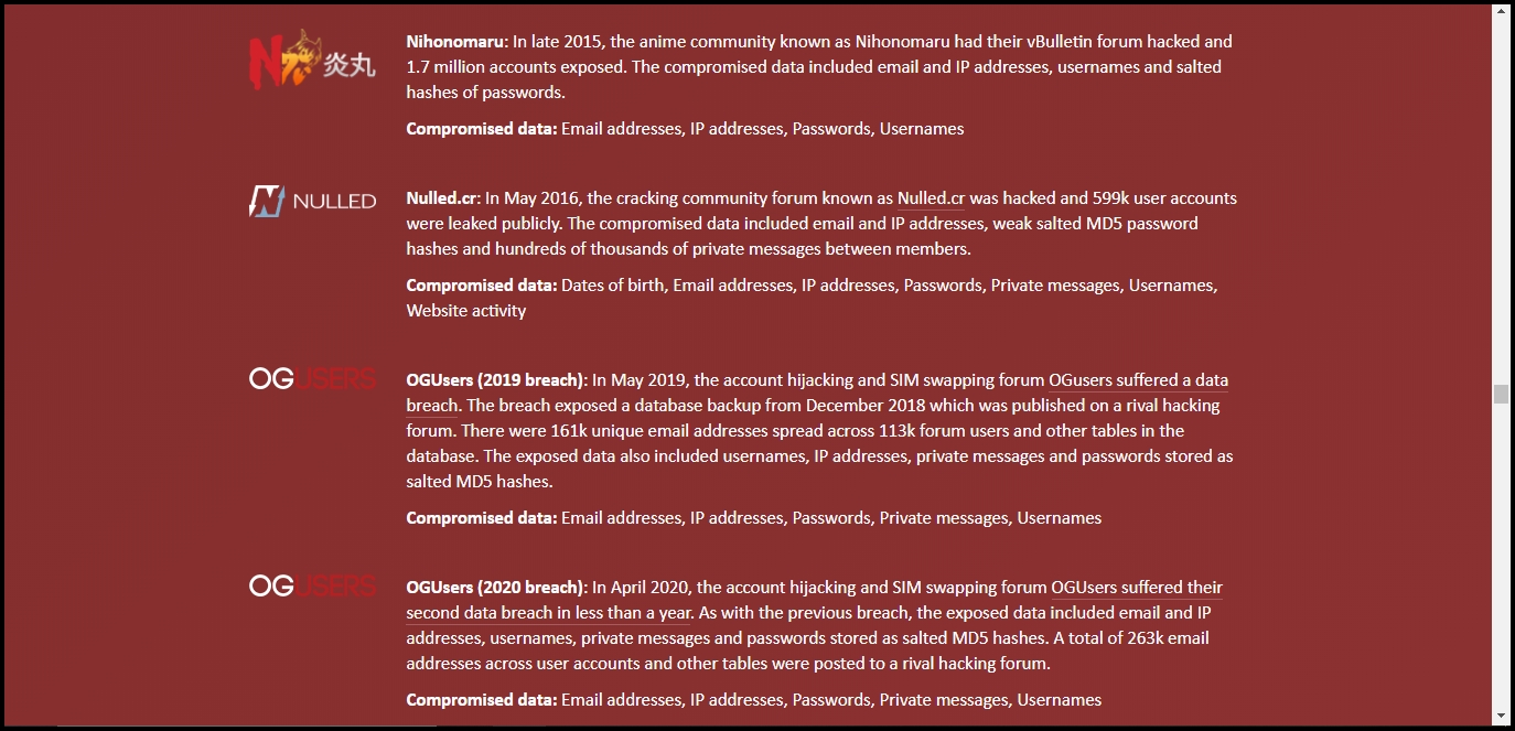 제가 이 사이트를 추천해 드리는 이유는 메일 해킹 여부를 확인해주는 사이트 그 자체가 해킹을 목적으로 만들어진 경우도 있기 때문입니다. 그러면서 haveibeenpwnd는 안전하다고 볼 수 있죠.